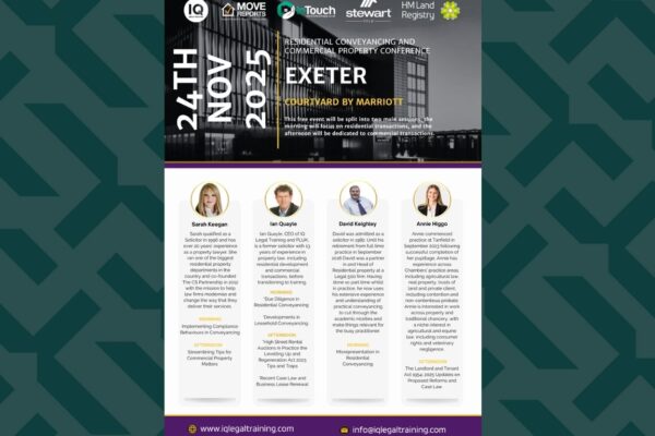 Annie Higgo will be speaking at the IQ Legal Training Residential Conveyancing and Commercial Property Conference on Monday, 24th November.